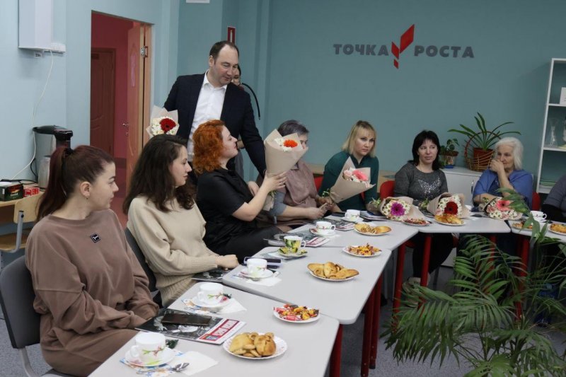 В преддверии Международного женского дня глава округа вручил участницам встречи цветы и журнал «Воинская доблесть».