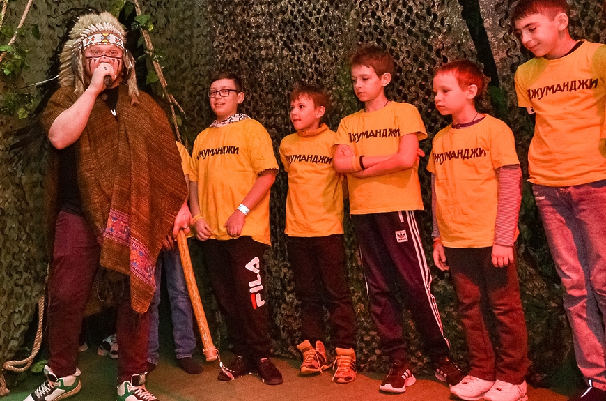 В квесте приняли участие 24 ребёнка, которые разделились на 3 команды. Каждое испытание имело отношение к небезызвестному фильму «Джуманджи»: участникам необходимо было справиться с обезьянами, исследовать пещеру страха, выбраться из паучьего логова и пройти другие задания.