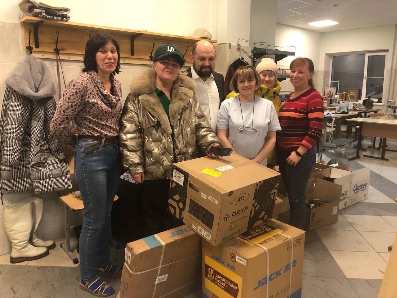 "Наши хрупкие женщины после основной работы шьют для наших бойцов крайне необходимые вещи! Спасибо руководству НПО Стеклопластик за вовлечение в этот процесс и предоставление помещения для волонтеров. Во время дружеского общения стало понятно, что не хватает микроволновки для коллектива. Пришлось ехать в магазин и исправлять это недоразумение",- рассказал Александр Волнушкин .