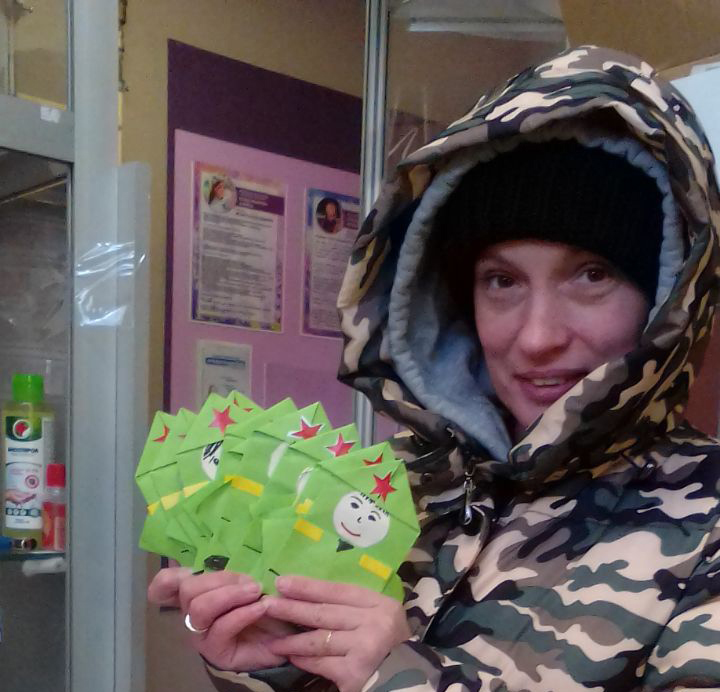 Людмила Хмелевская и ее семья принесли в пункт помощи десять термосов и батарейки.