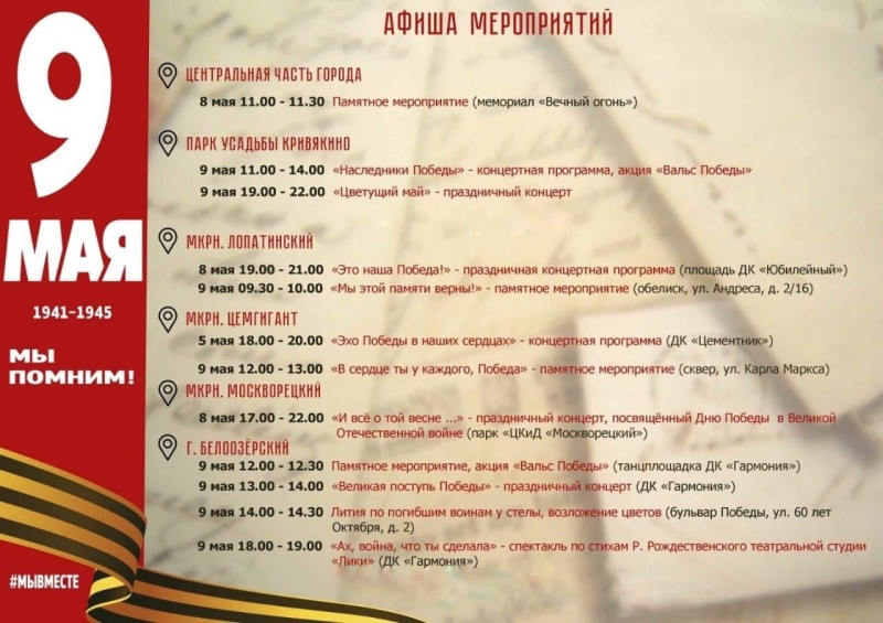 Предлагаем вашему вниманию афишу мероприятий, посвященных 78-ой годовщине Победы в Великой Отечественной войне.