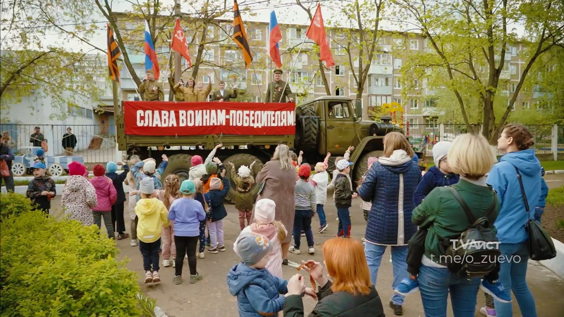 Агитбригады накануне 9 Мая создают особое праздничное настроение жителям округа. В их маршруте много остановок, но главные остановки — дворы, где живут ветераны Великой Отечественной войны.
