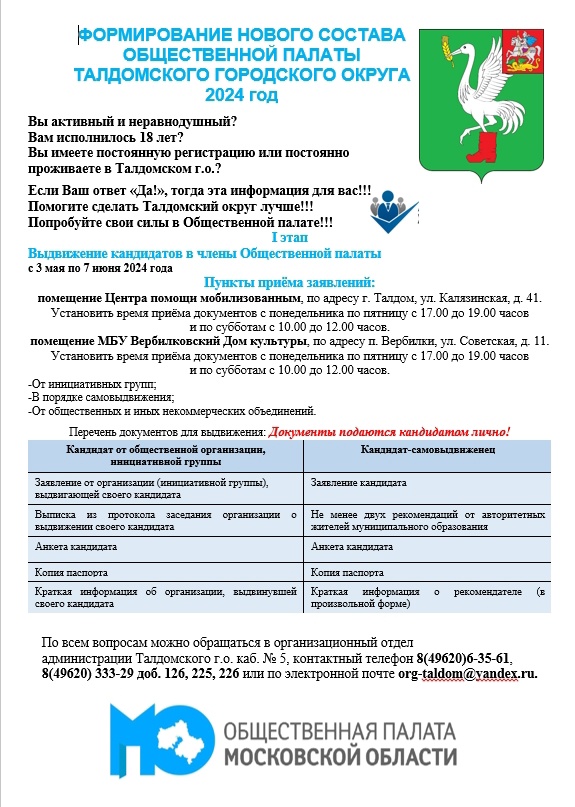 Сегодня стартует формирование нового состава общественной палаты Талдомского городского округа.