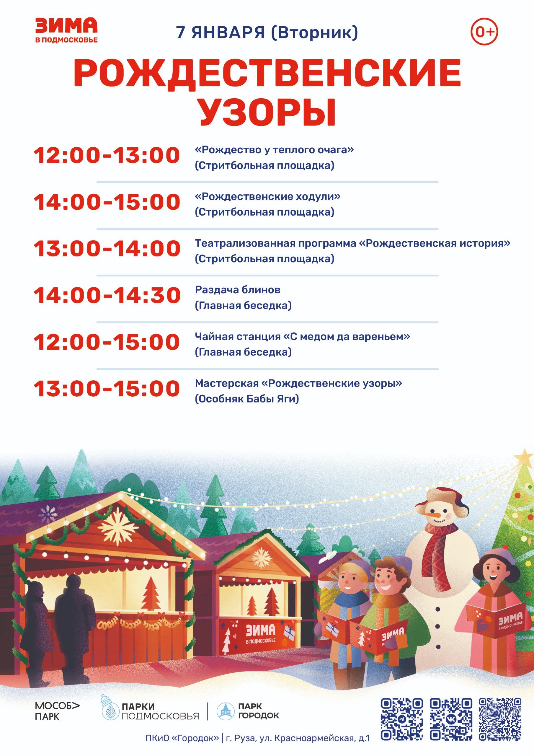 Парк культуры и отдыха «Городок» приглашает жителей и гостей Рузского округа на общеобластное мероприятие «Рождественские узоры».