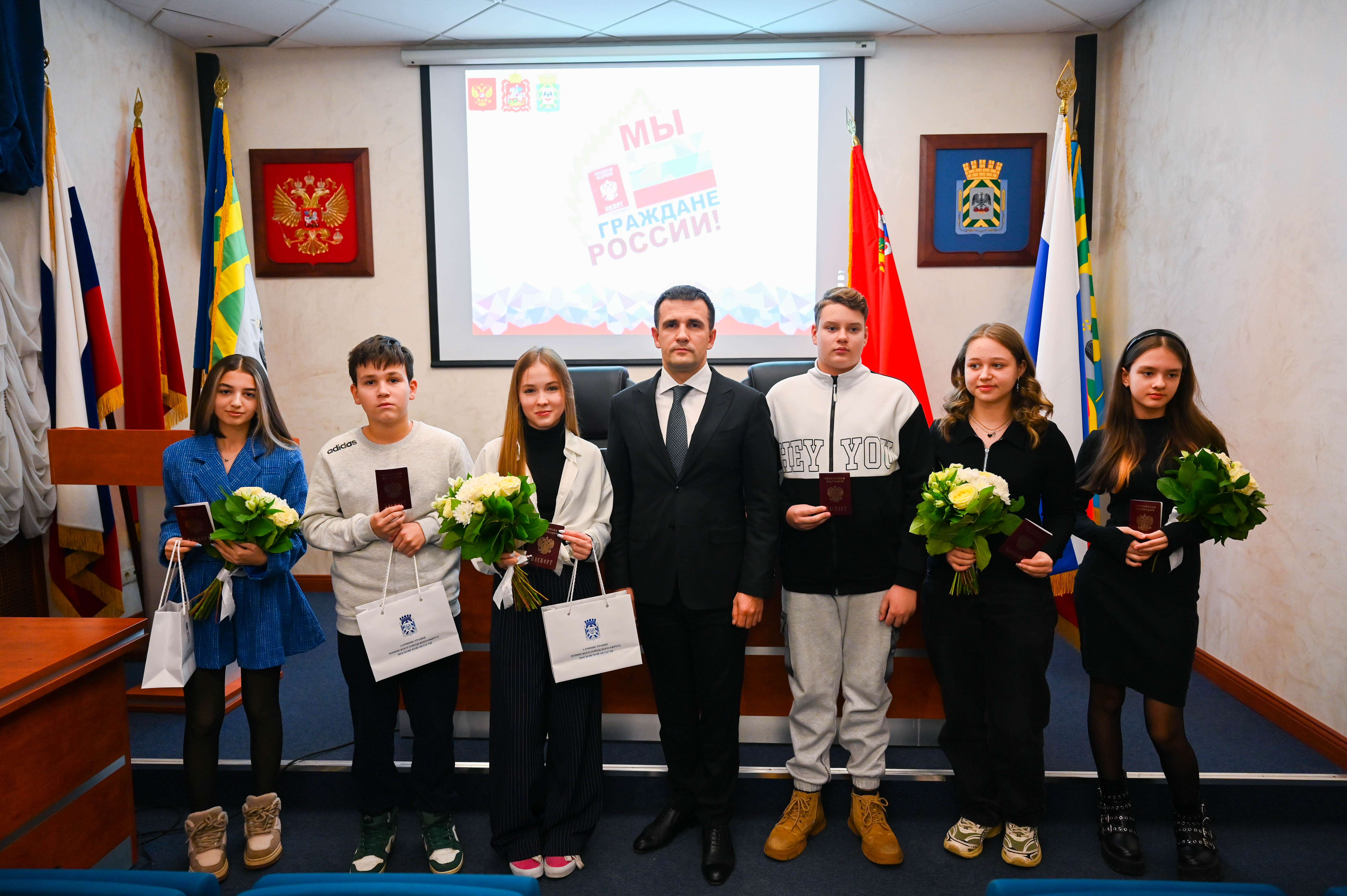 В здании администрации вновь прошло торжественное мероприятие, посвященное вручению паспортов 14-летним гражданам Российской Федерации. Глава Ленинского городского округа Станислав Каторов лично вручил шестерым юным жителям их первый важный документ. Помимо этого, они также получили памятные подарки, сообщает пресс-служба главы муниципалитета.