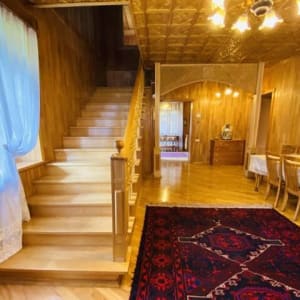 В доме на цокольном этаже 110кв метров располагается котельня и помещения для свободного назначения( например можно поставить бильярдный стол. На первом этаже располагаются; прихожая, гостинная 59 кв метров кухня столовая 44,84 кв. метра, сан. узел с джакузи. На втором этаже 4 уютные и просторные спальни, сан. узел с душем. Третий этаж мансардный имеет площадь 148 квадратных метров, отлично подойдет для спортзала Коммуникации: Водопровод центральный. Канализация - Септик. Мебель во всех комнатах остается новым владельцам. Отопление дома от двух газовых котлов, подключенного к магистральному газопроводу. Центральный водопровод и электричество 15 кВт .